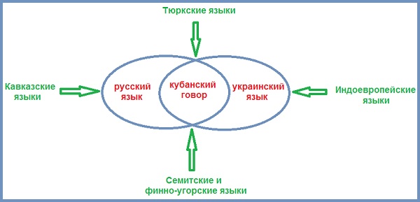 схему возникновения кубанских говоров, учитывая их украинскую и