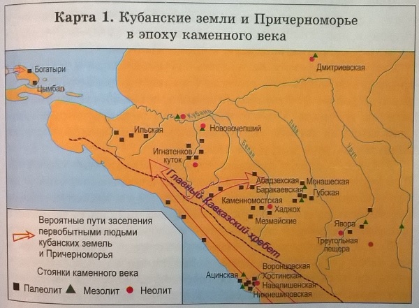 на контурной карте 1 (стр.6) стоянки неолита.