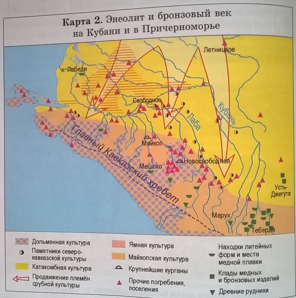 на контурной карте 2 (стр. 20) территорию распространения дольменной