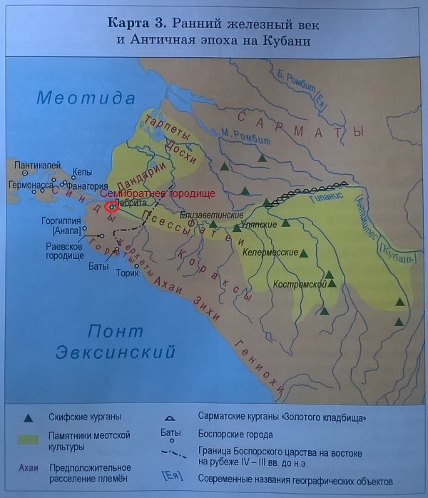 - на территории Семибратнего городища вблизи ст. Варениковской,
