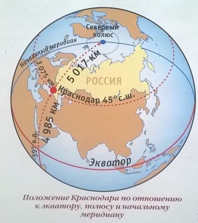 а следовательно, и Краснодар будут ближе к экватору, чем к полюсу.