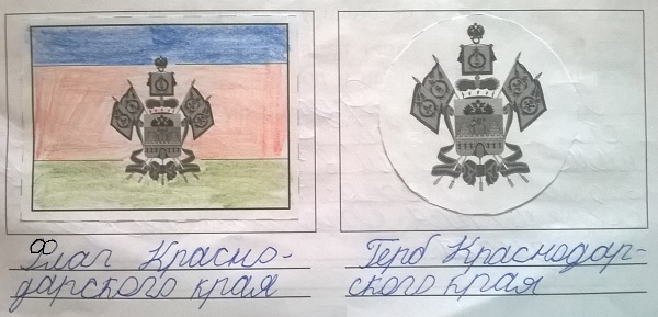 приложений и наклей изображения герба и флага Краснодарского края.